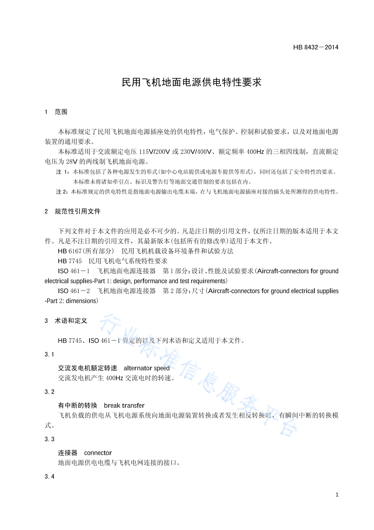 HB 8432-2014(2017) 民用飞机地面电源供电特性要求