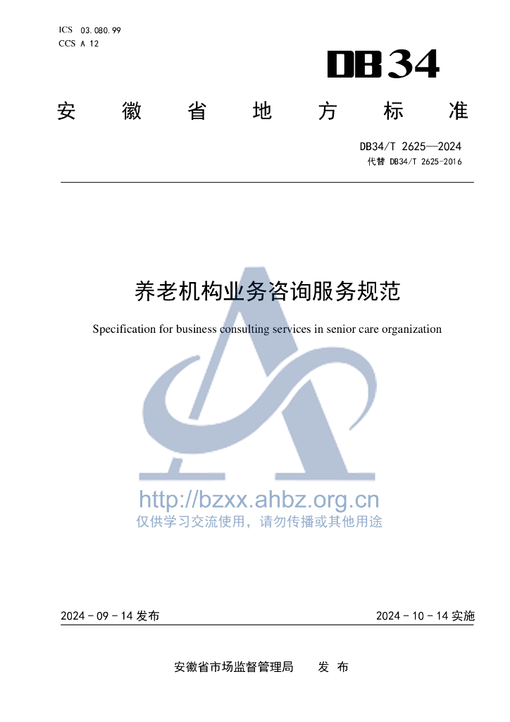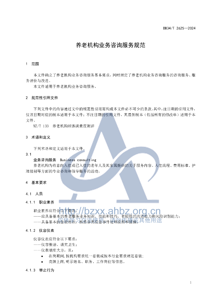 DB34/T 2625-2024 养老机构业务咨询服务规范