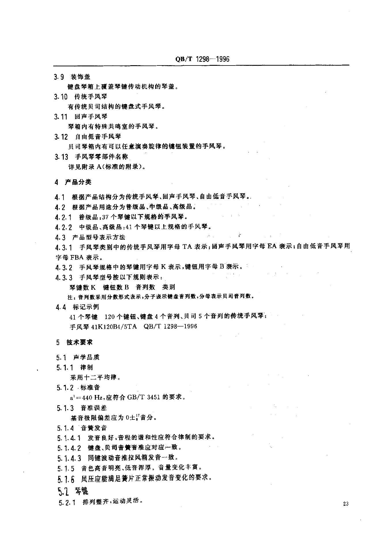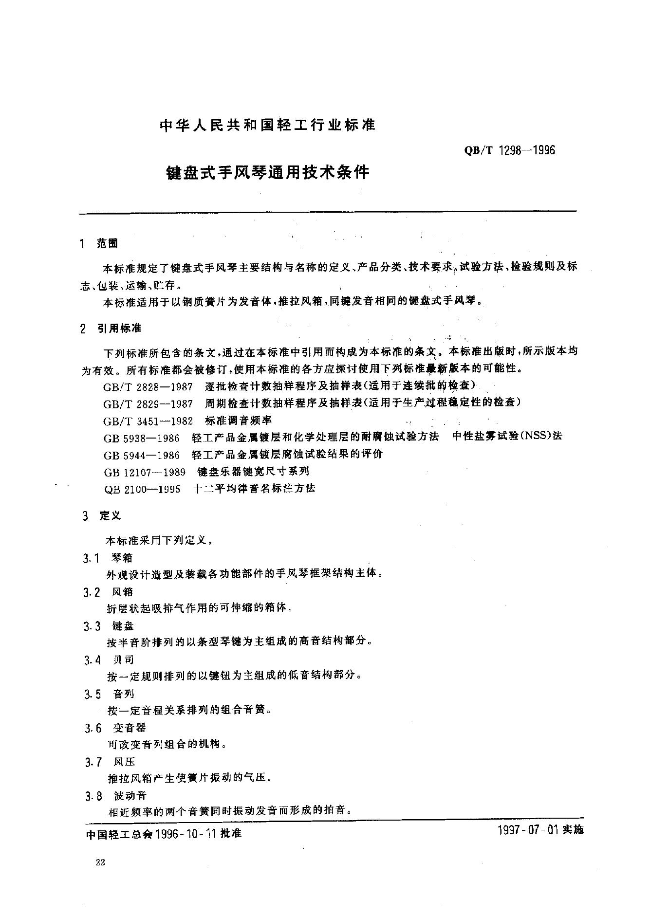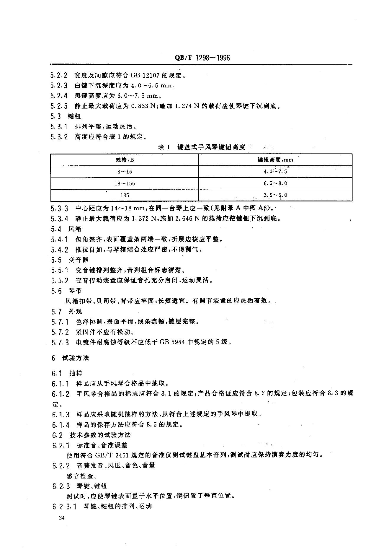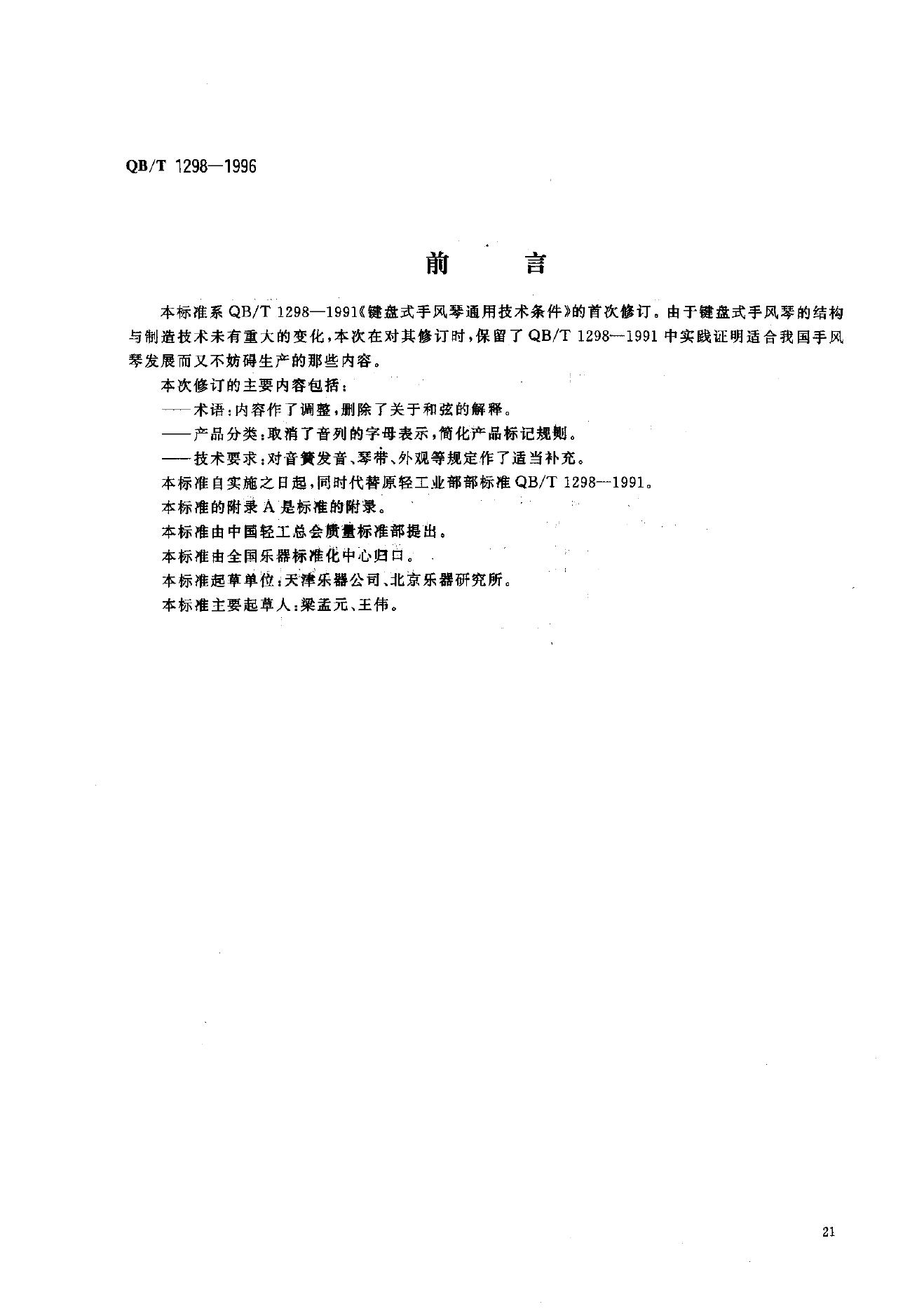 QB 1298-1991 键盘式手风琴通用技术条件