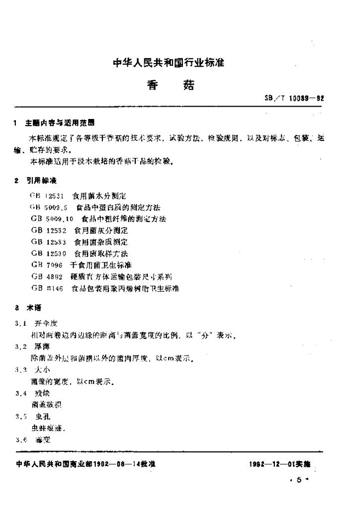 SB/T 10039-1992 香菇