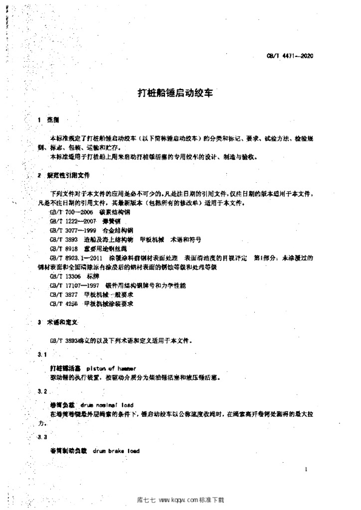 CB/T 4471-2020 打桩船锤启动绞车