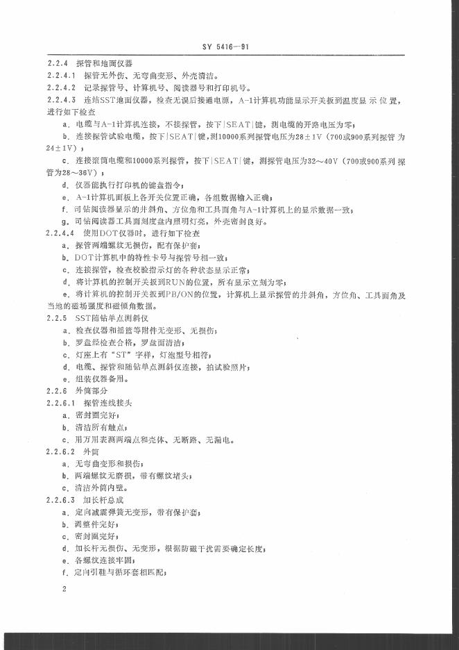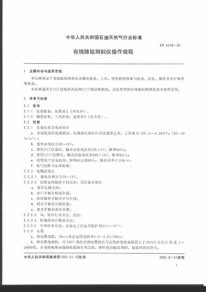 SY 5416-1991 有线随钻测斜仪操作规程