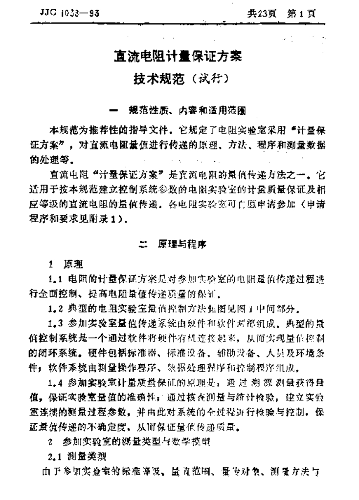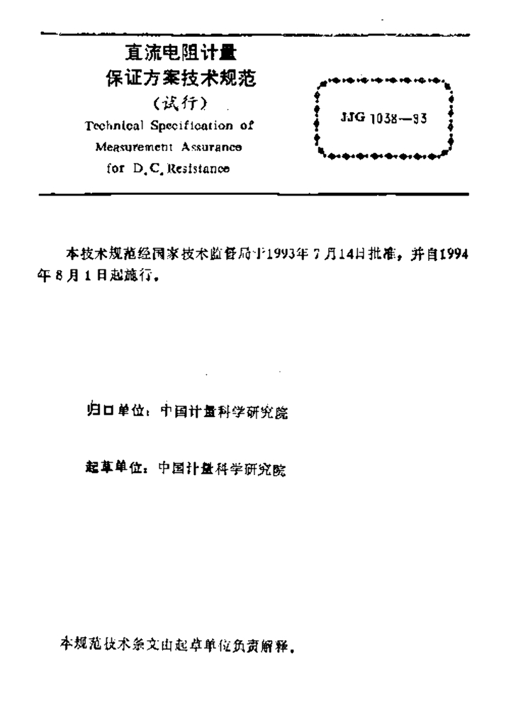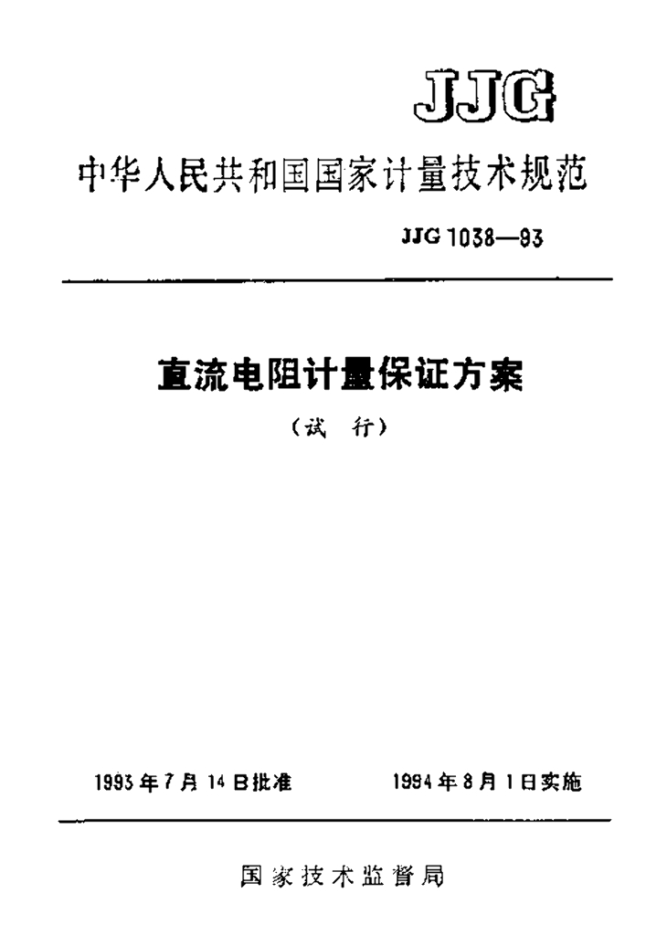 JJF 1038-1993 直流电阻计量保证方案技术规范