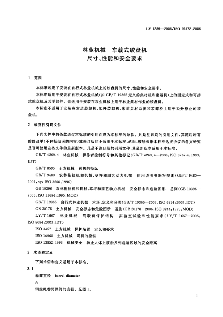 LY 1289-2008 林业机械车载式绞盘机尺寸、性能和安全要求