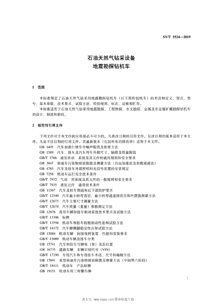 SY/T 5524-2019 石油天然气钻采设备 地震勘探钻机车