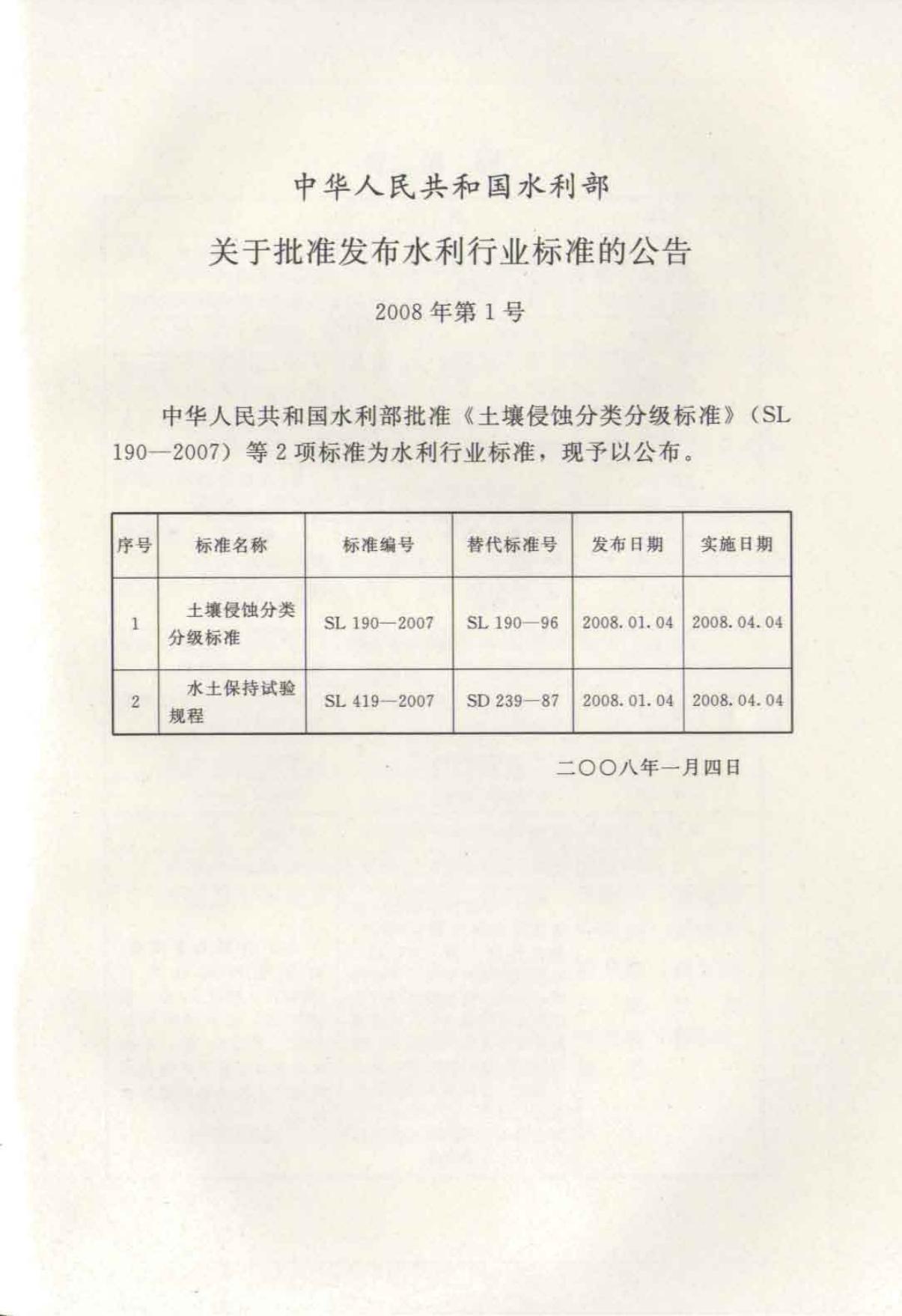 SL 190-2008 土壤侵蚀分类分级标准