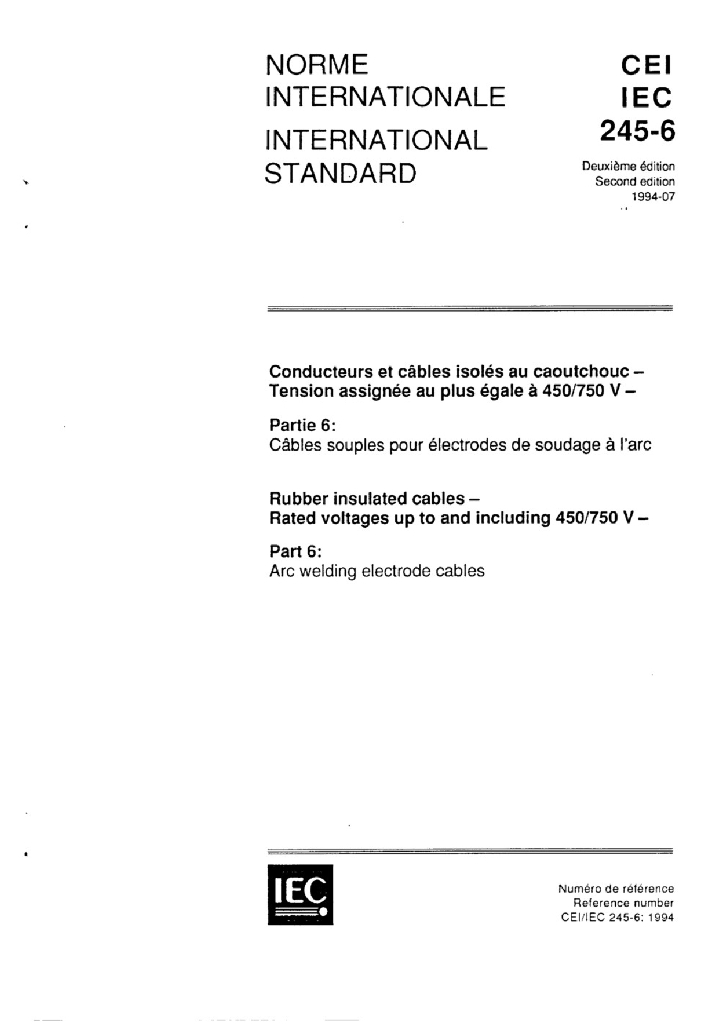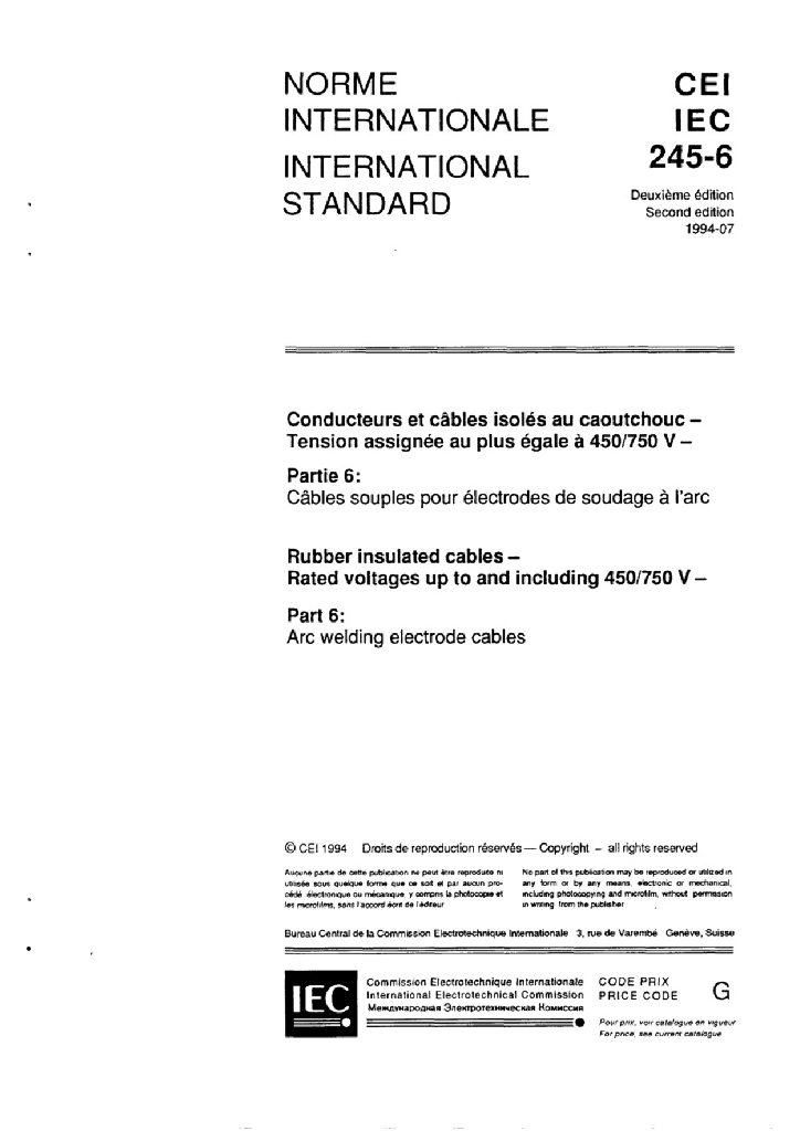 IEC 60245-6:1994+A1:1997+A2:2003 额定电压450/750V及以下橡皮绝缘电缆 第6部分 电焊机电缆