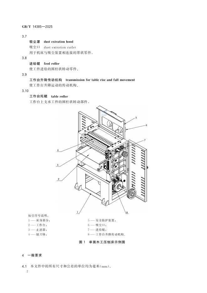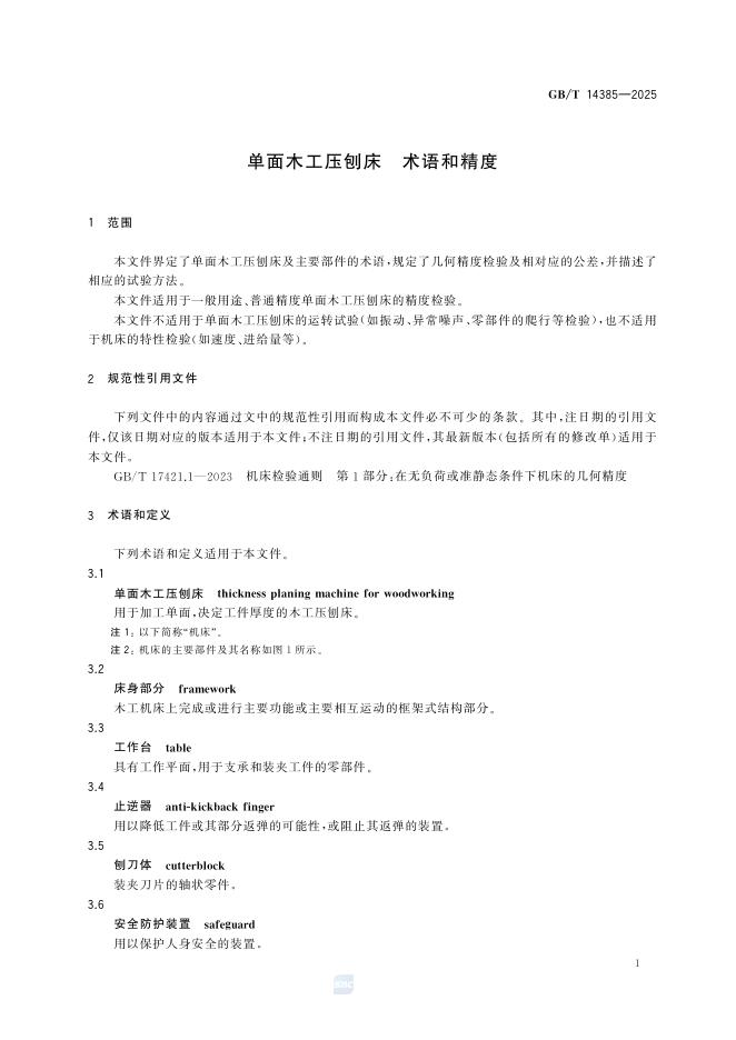 GB/T 14385-2025 单面木工压刨床 术语和精度