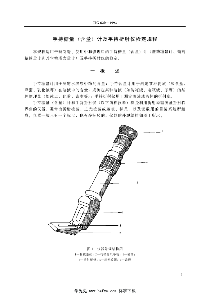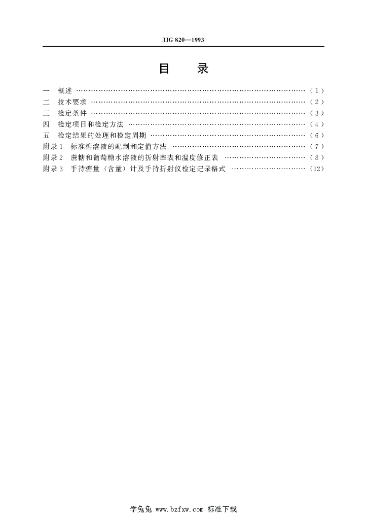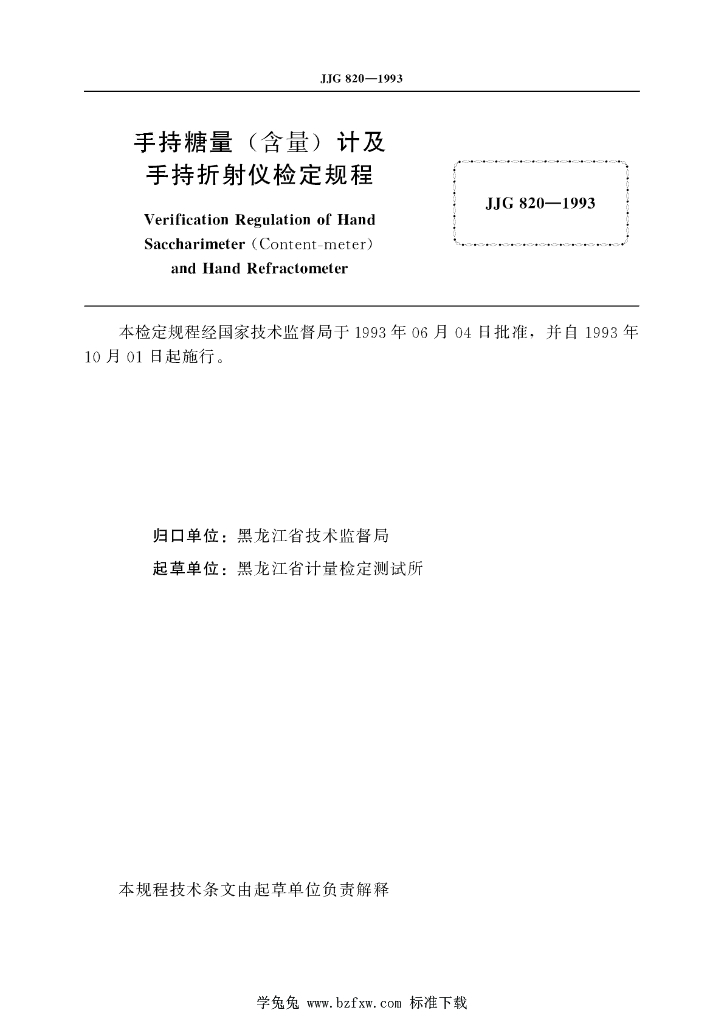 JJG 820-1993 手持糖量(含量)计及手持折射仪