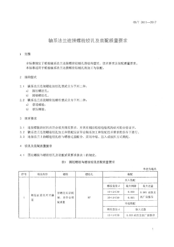 CB/T 3611-2017 轴系法兰连接螺栓铰孔及装配质量要求