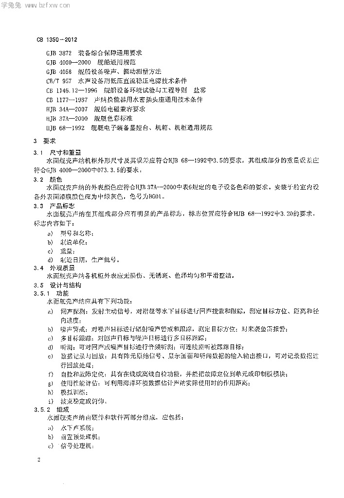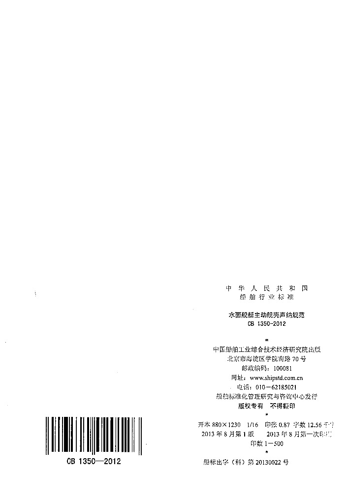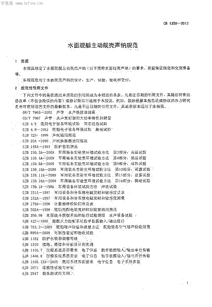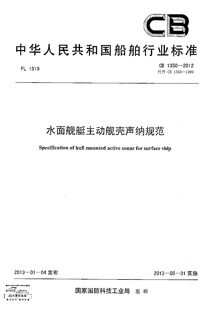 CB 1350-2012 水面舰艇主动舰壳声纳规范