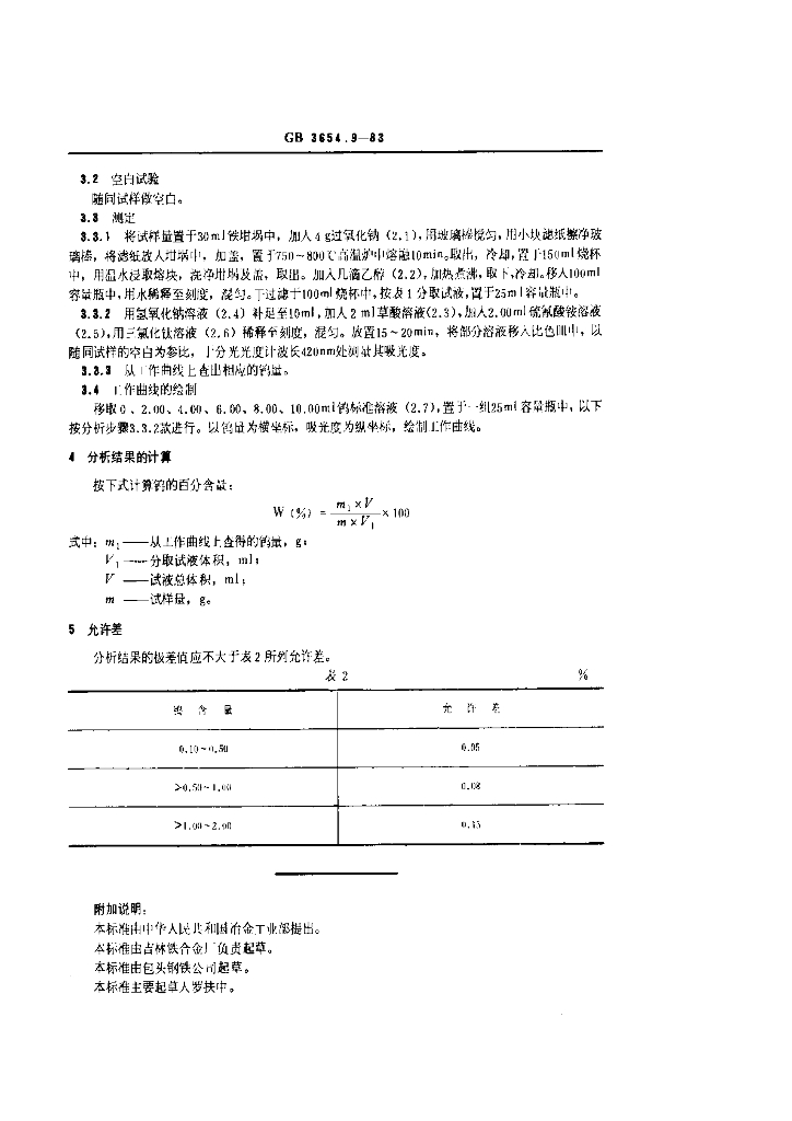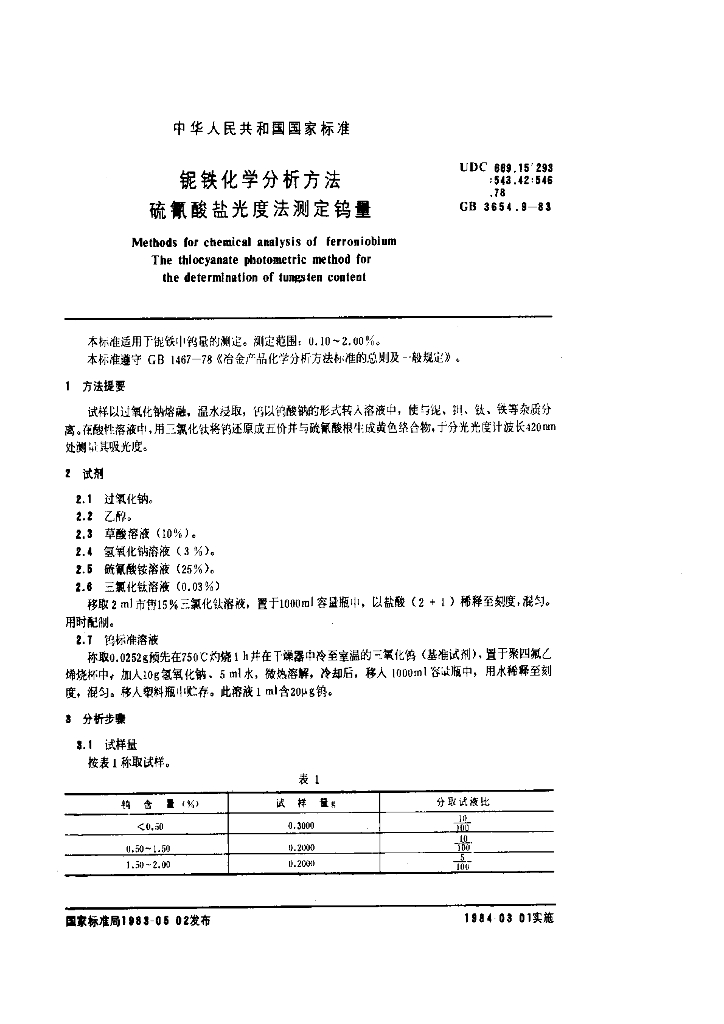 GB/T 3654.9-1983 铌铁化学分析方法 硫氰酸盐光度法测定钨量