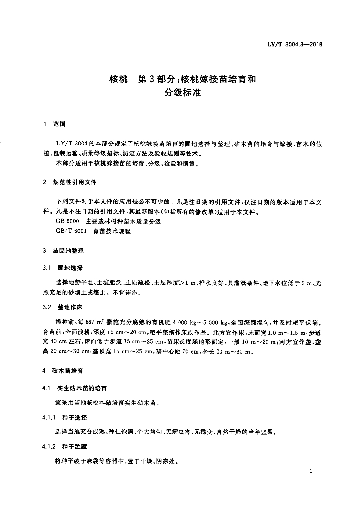 LY/T 3004.3-2018 核桃 第3部分:核桃嫁接苗培育和 分级标准