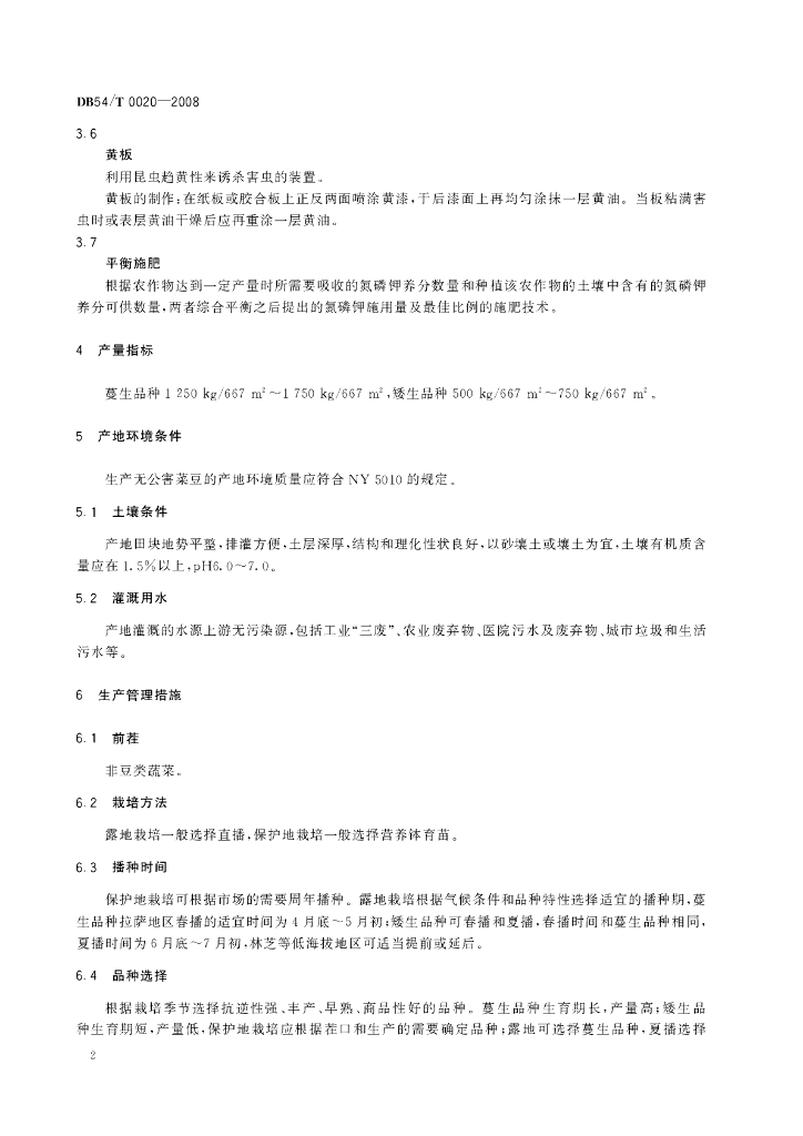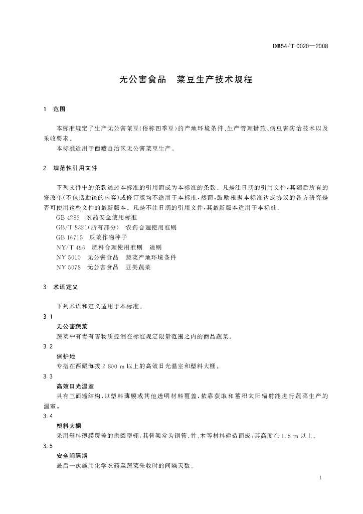 DB54/T 0020-2008 无公害食品 菜豆生产技术规程
