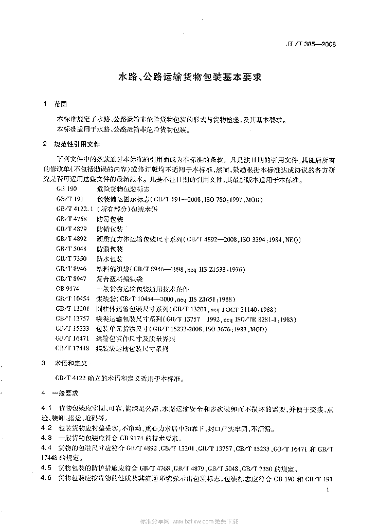 JT/T 385-2008 水路、公路运输货物包装基本要求