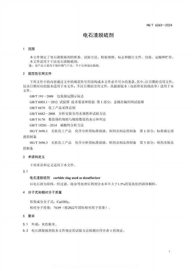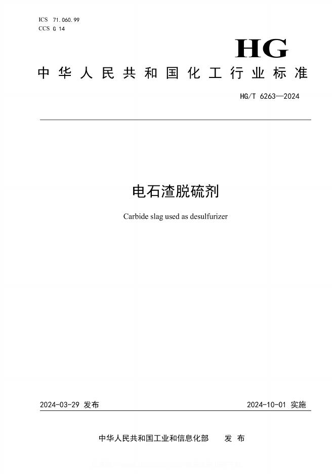 HG/T 6263-2024 电石渣脱硫剂