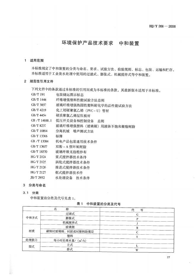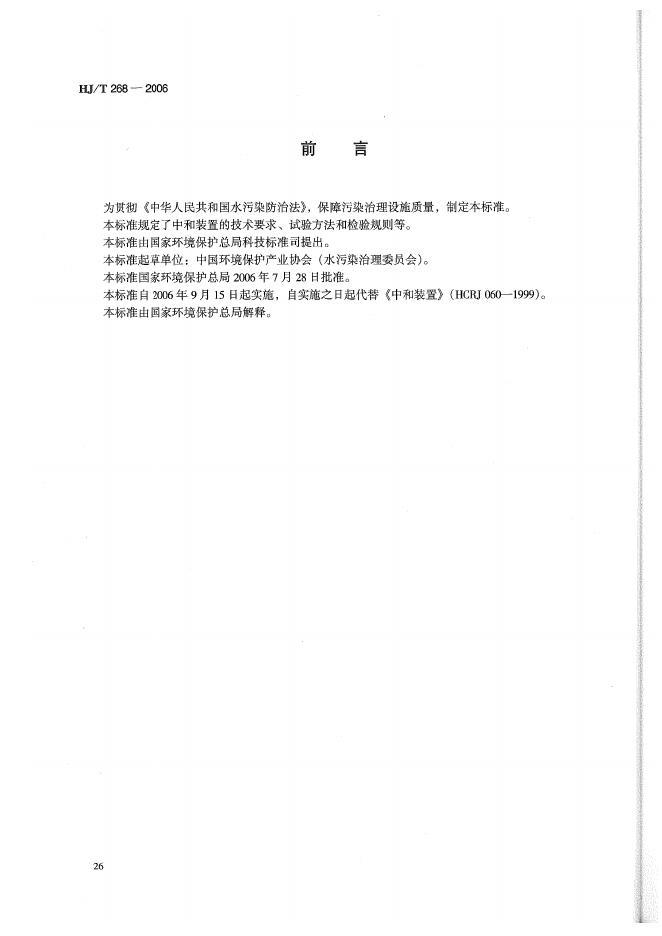 HJ/T 268-2006 环境保护产品技术要求 中和装置
