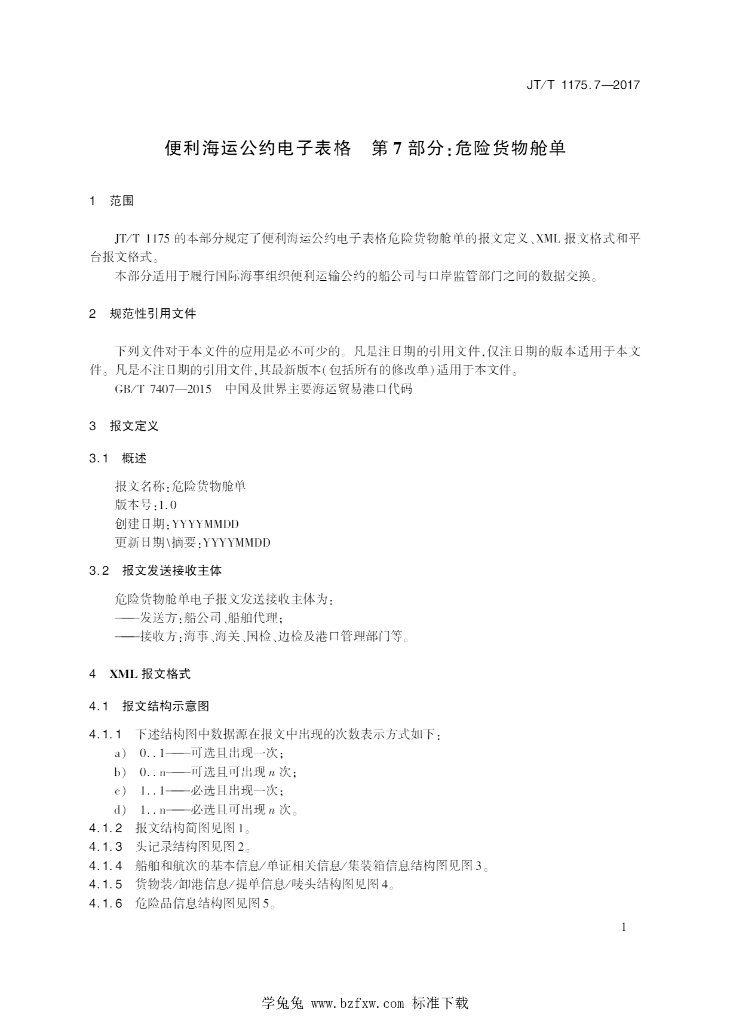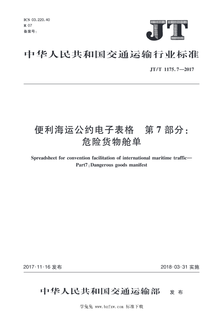 JT/T 1175.7-2017 便利海运公约电子表格 第7部分:危险货物舱单