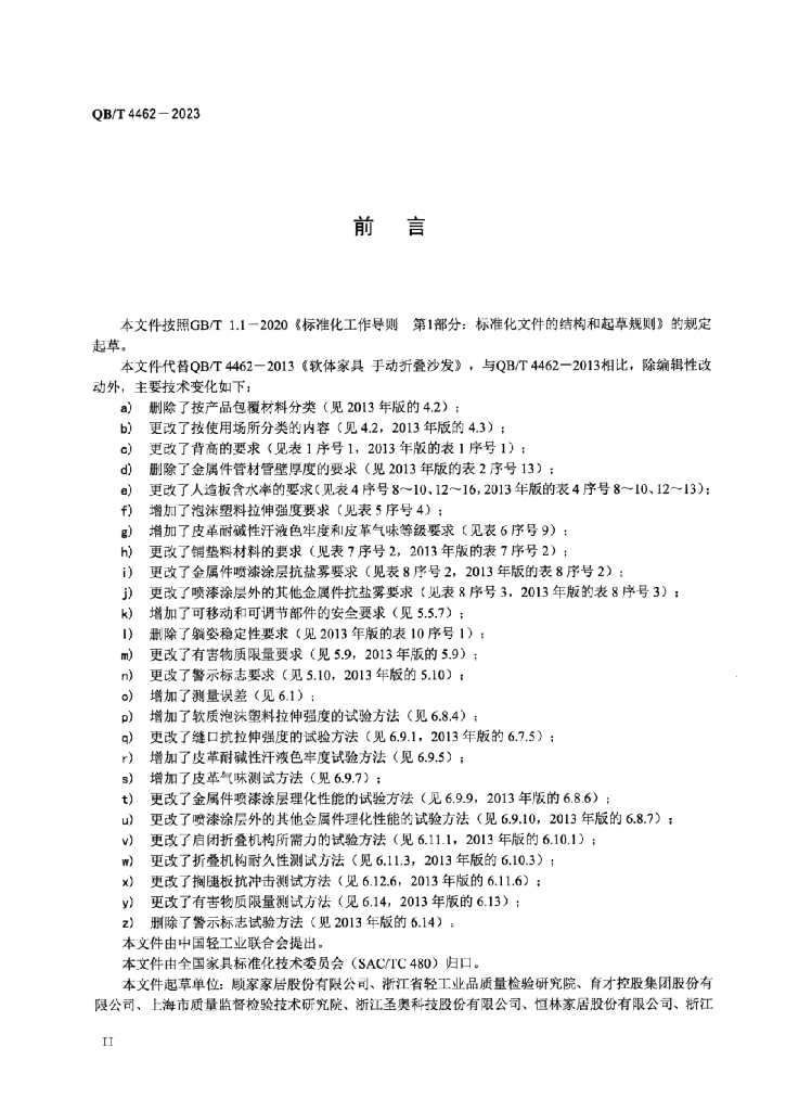 - 代替标准:QB/T 4462-2013