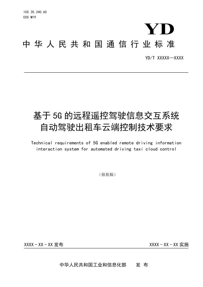 YD/T 4780-2024 基于5G的远程遥控驾驶信息交互系统 自动驾驶出租车云端控制技术要求