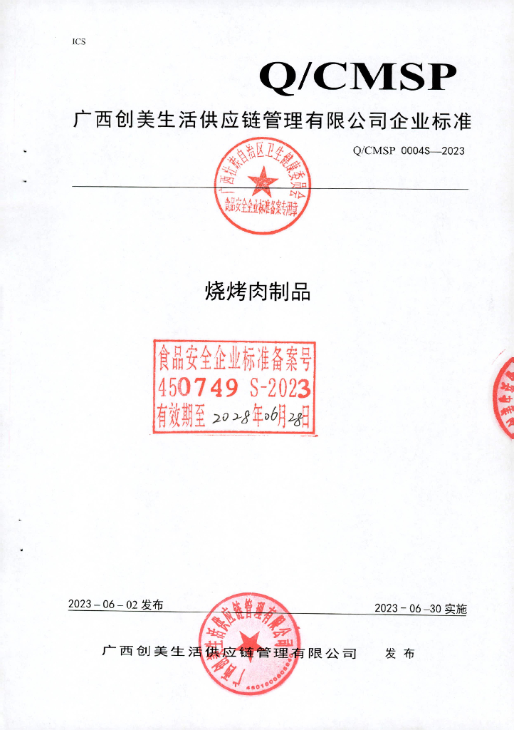 Q/CMSP 0004S-2023 烧烤肉制品