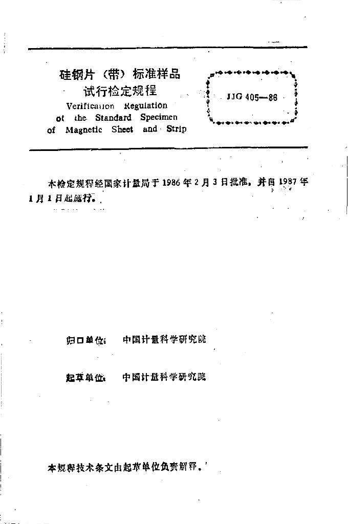 JJG 405-1986 硅钢片(带)标准样品试行检定规程