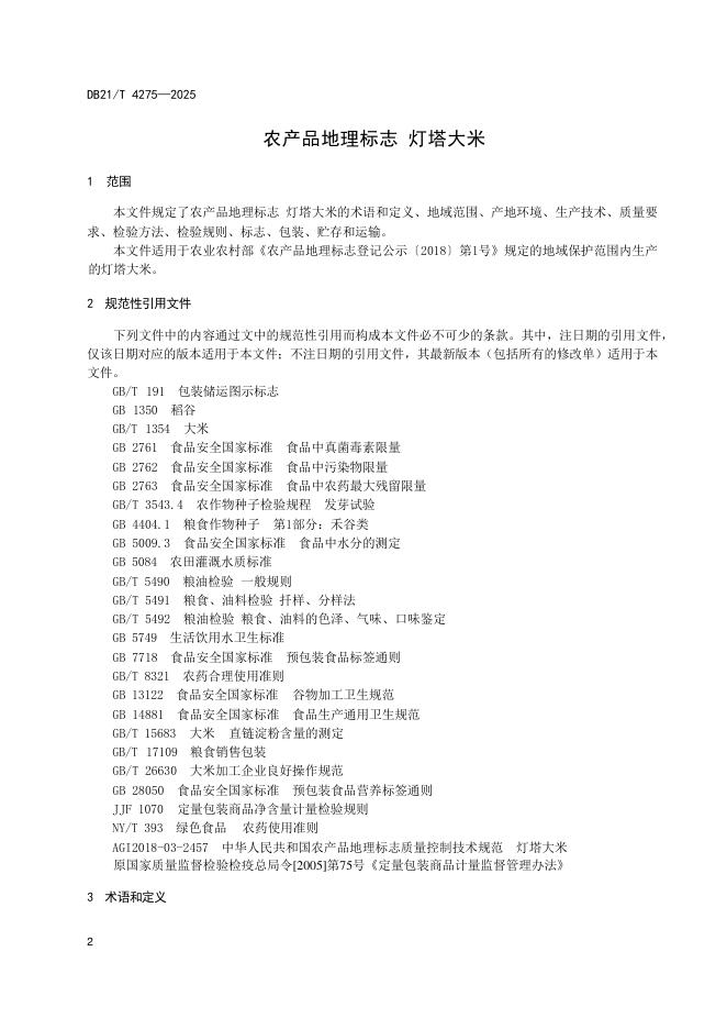 DB21/T 4275-2025 农产品地理标志 灯塔大米