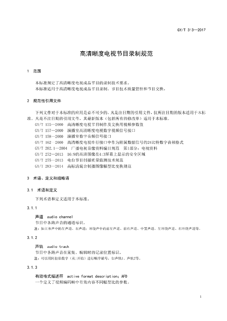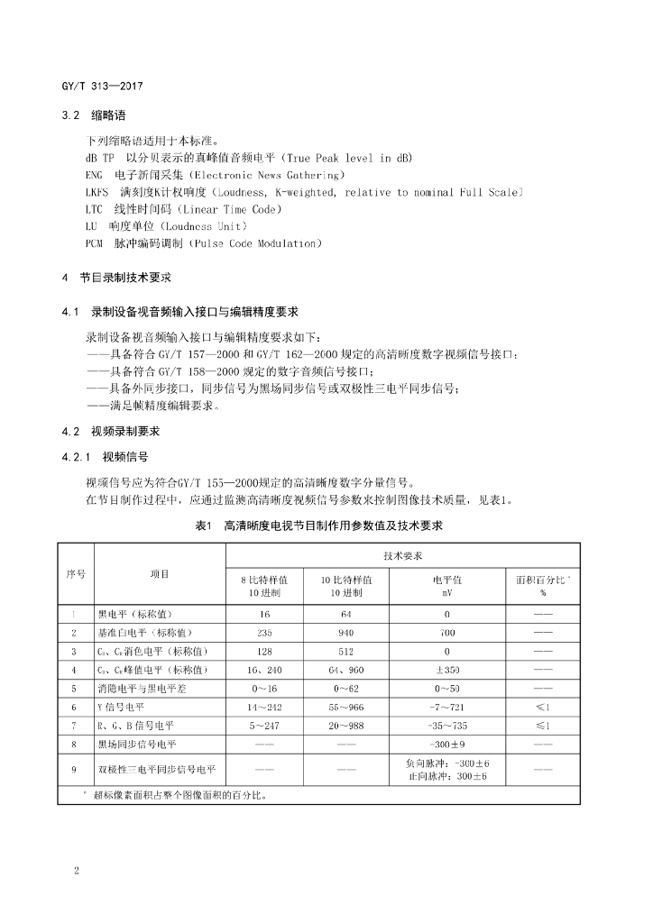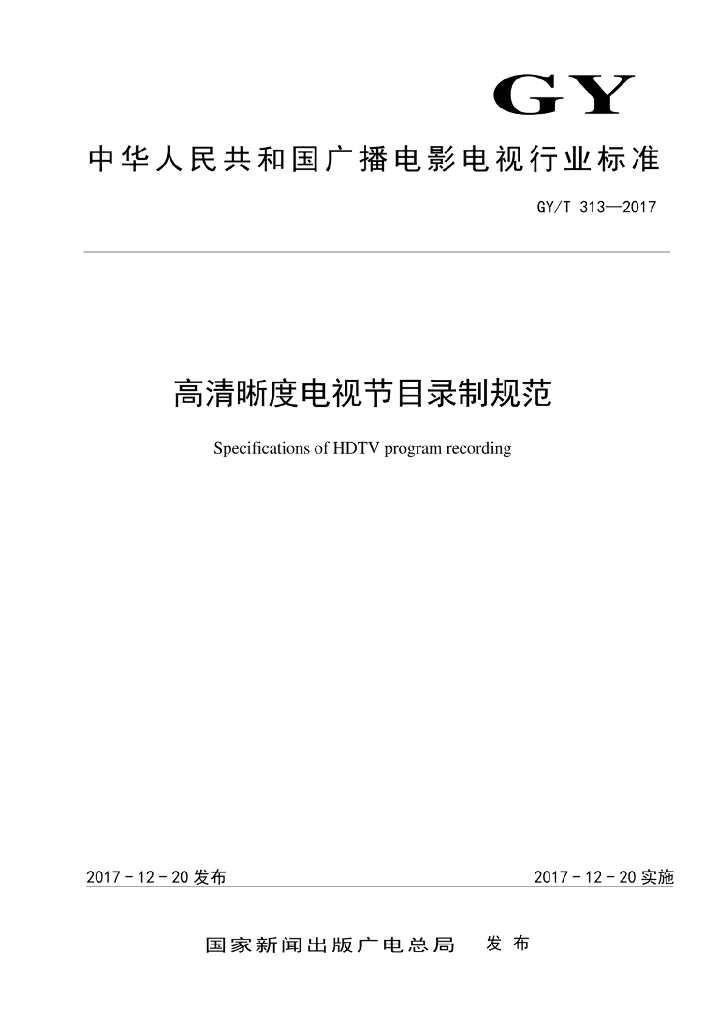GY/T 313-2017 高清晰度电视节目录制规范