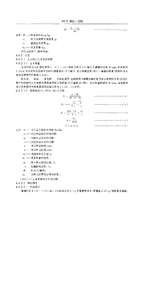 SN/T 0862-2000 进出口食品中总β(减去钾-40)放射性活度的检验方法
