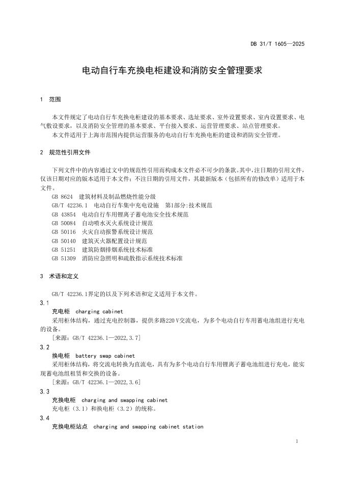 DB31/T 1605-2025 电动自行车充换电柜建设和消防安全管理要求