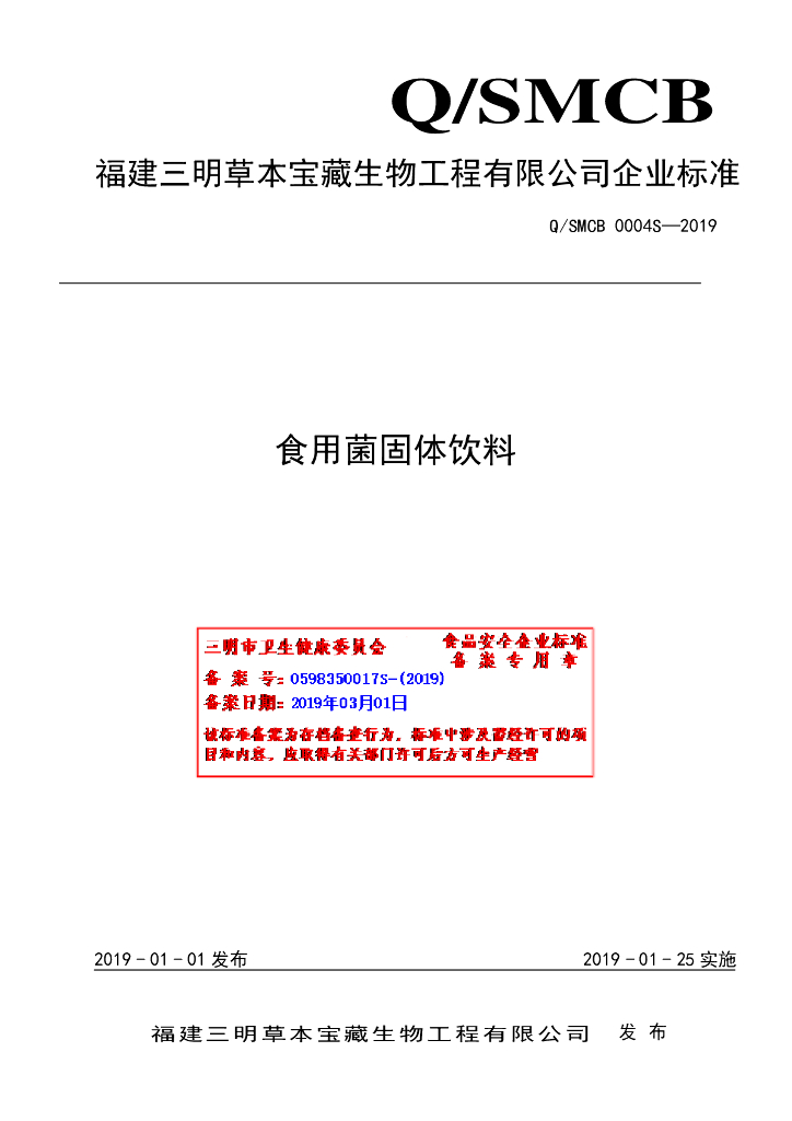 Q/SMCB 0004S-2019 食用菌固体饮料