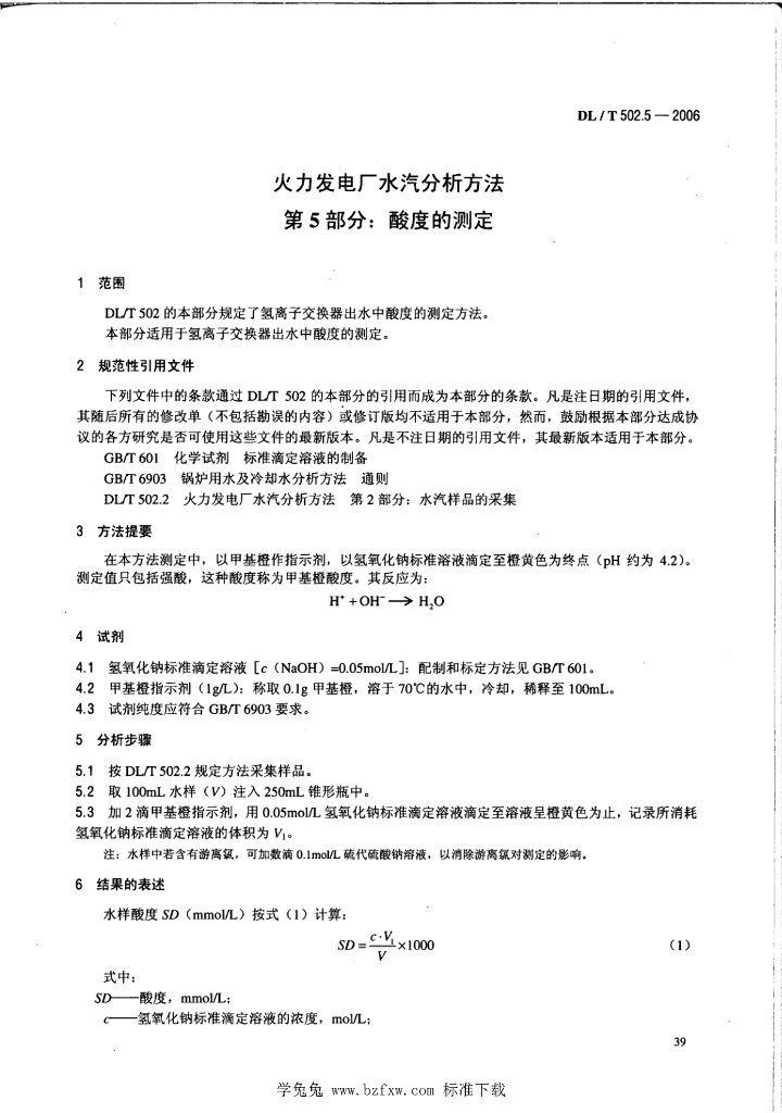 DL/T 502.5-2006 火力发电厂水汽分析方法 第5部分:酸度的测定