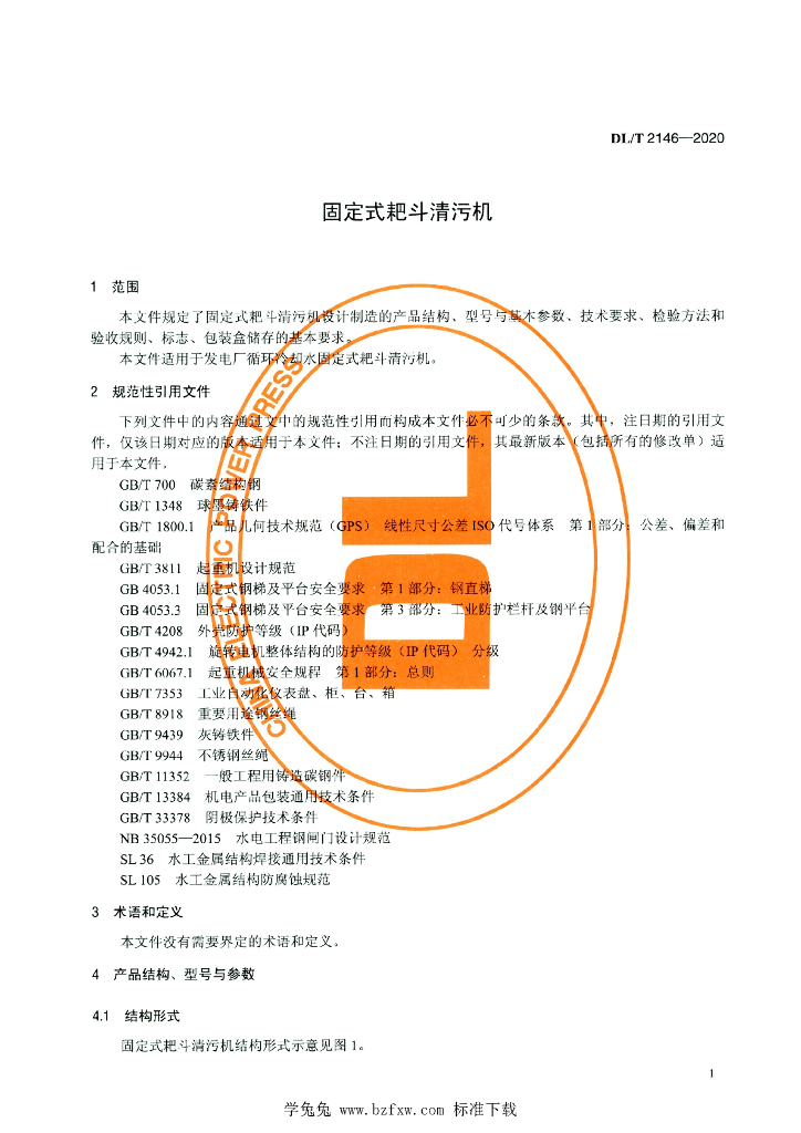 DL/T 2146-2020 固定耙斗清污机