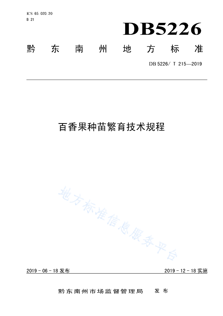 DB5226/T 215-2019 百香果种苗繁育技术规程
