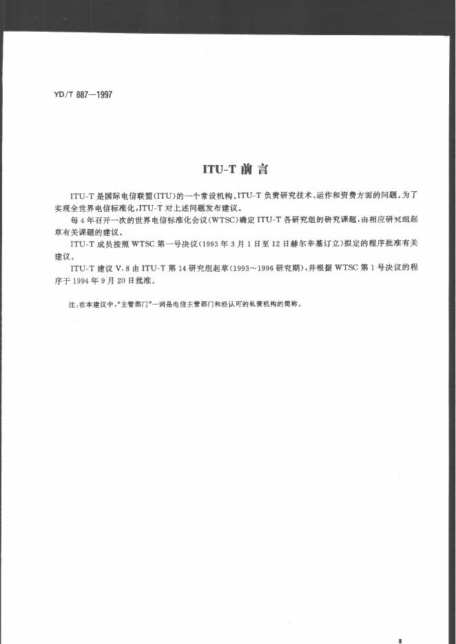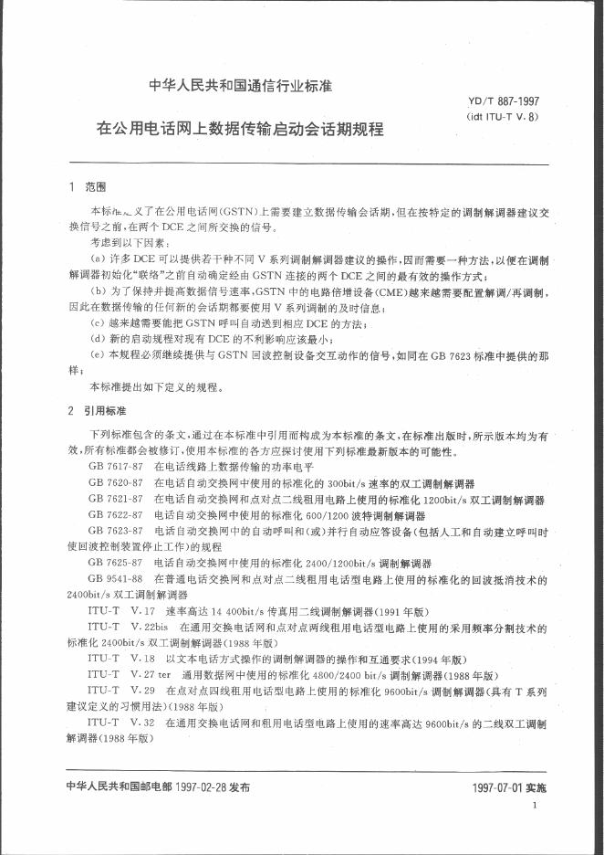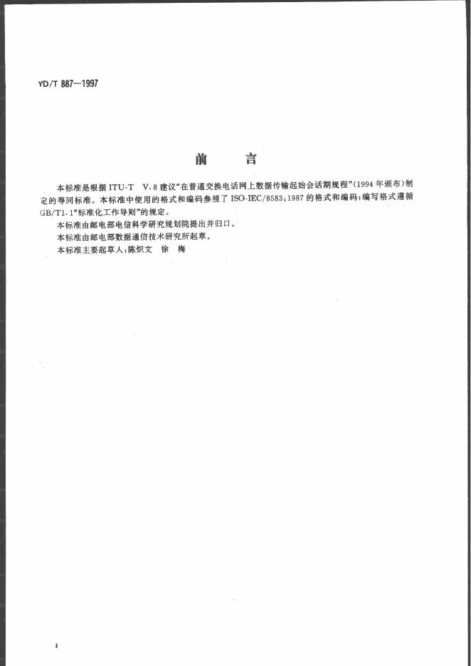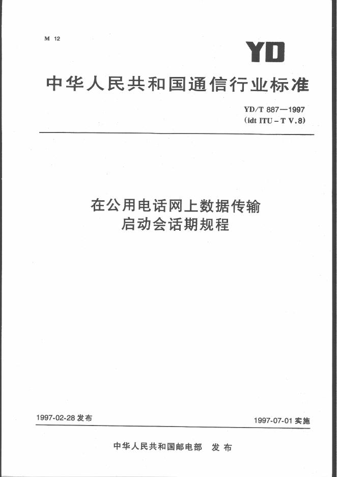 YD/T 887-1997 在公用电话网上数据传输启动会话期规程