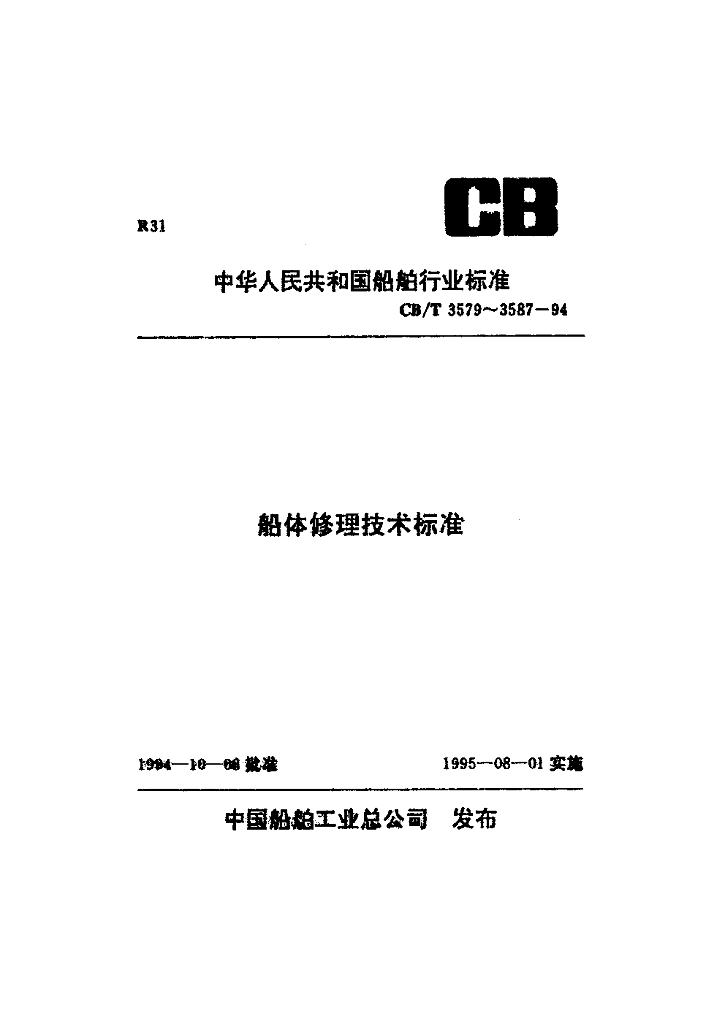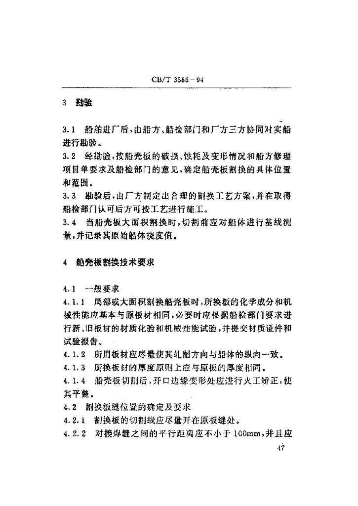 CB/T 3586-1994 船壳局部嵌补及大面积割换技术要求