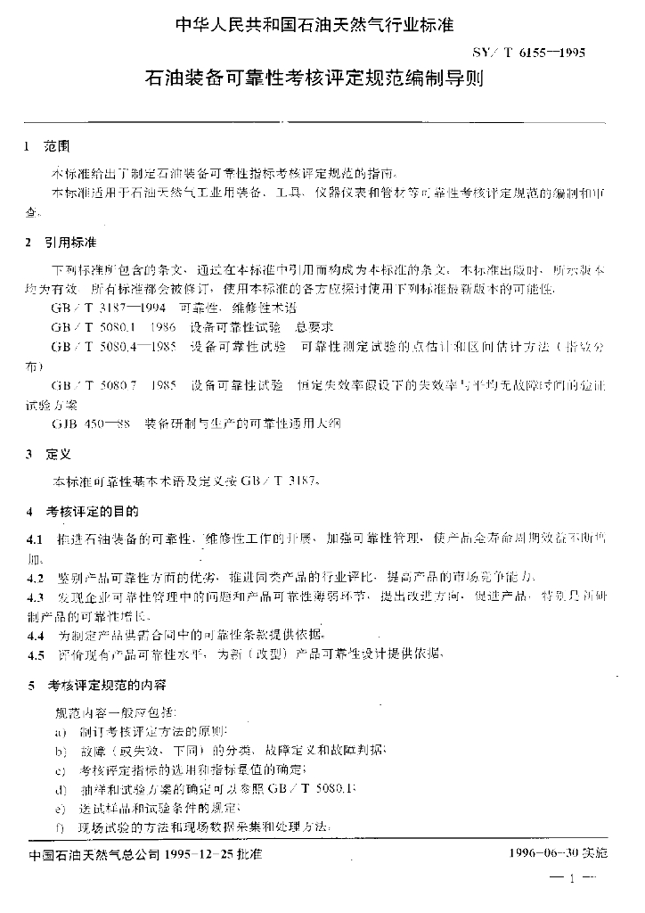 SY/T 6155-1995 石油装备可靠性考核评定规范编制导则