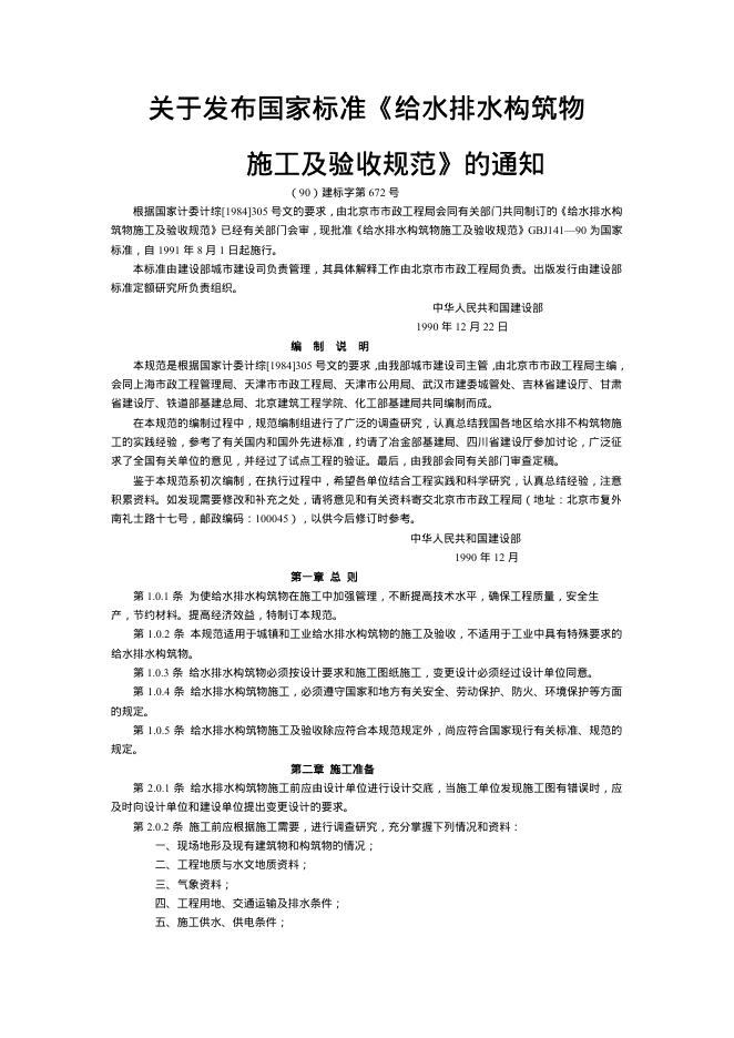 GBJ 141-1990 给水排水构筑物施工及验收规范