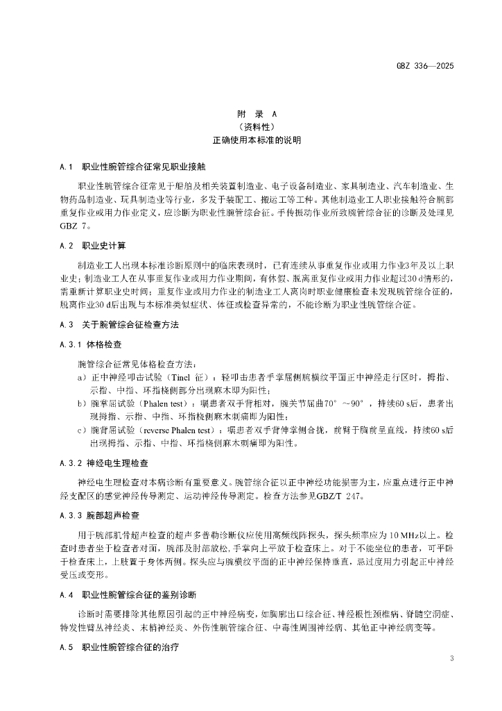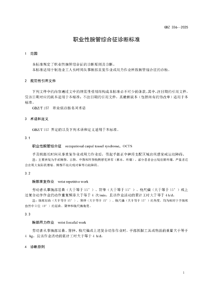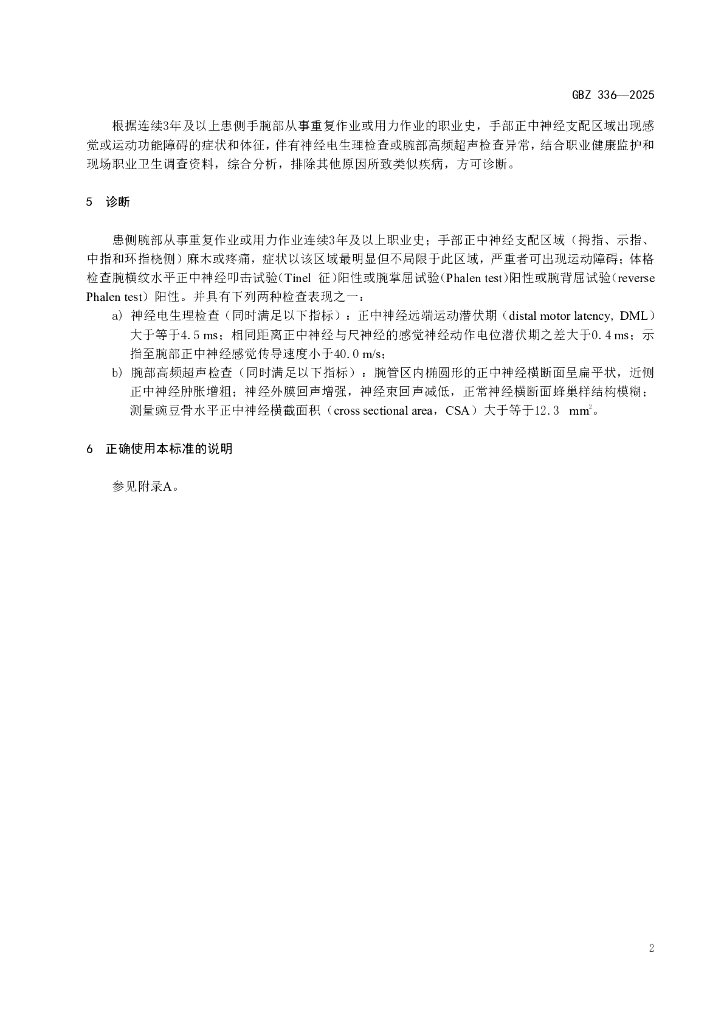 GBZ 336-2025 职业性腕管综合征诊断标准