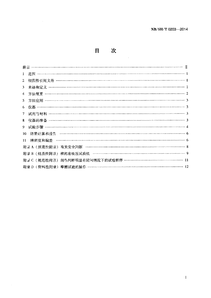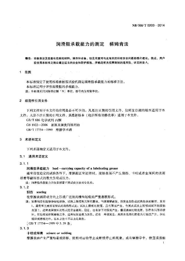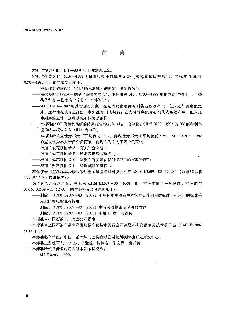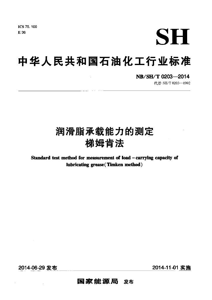 NB/SH/T 0203-2014 润滑脂承载能力的测定 梯姆肯法