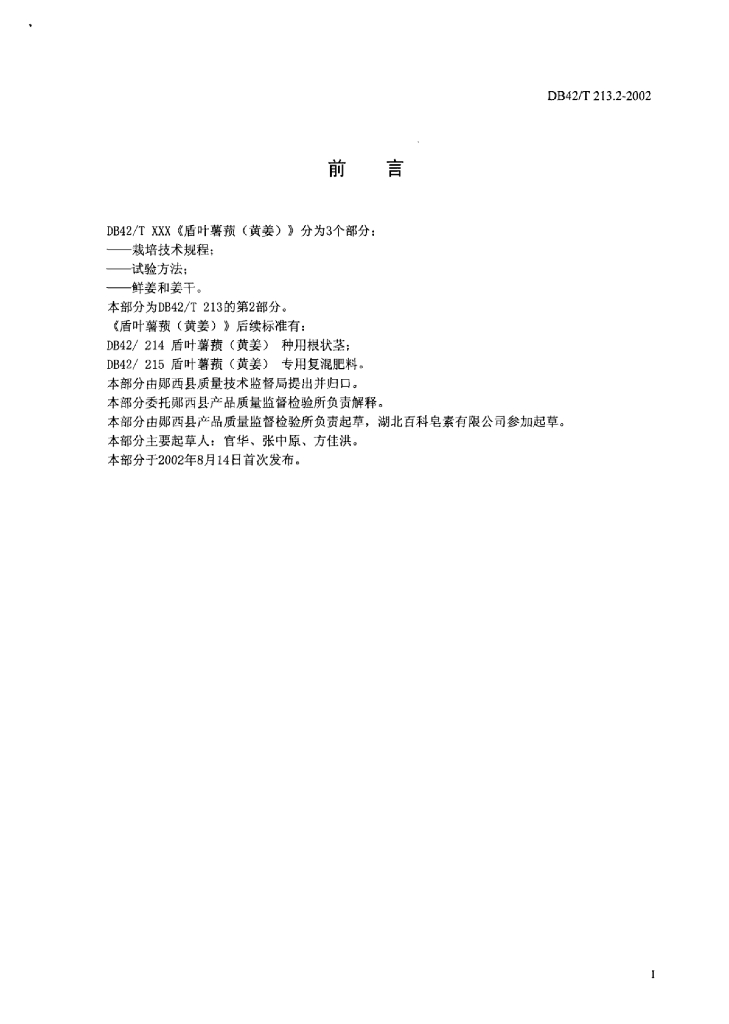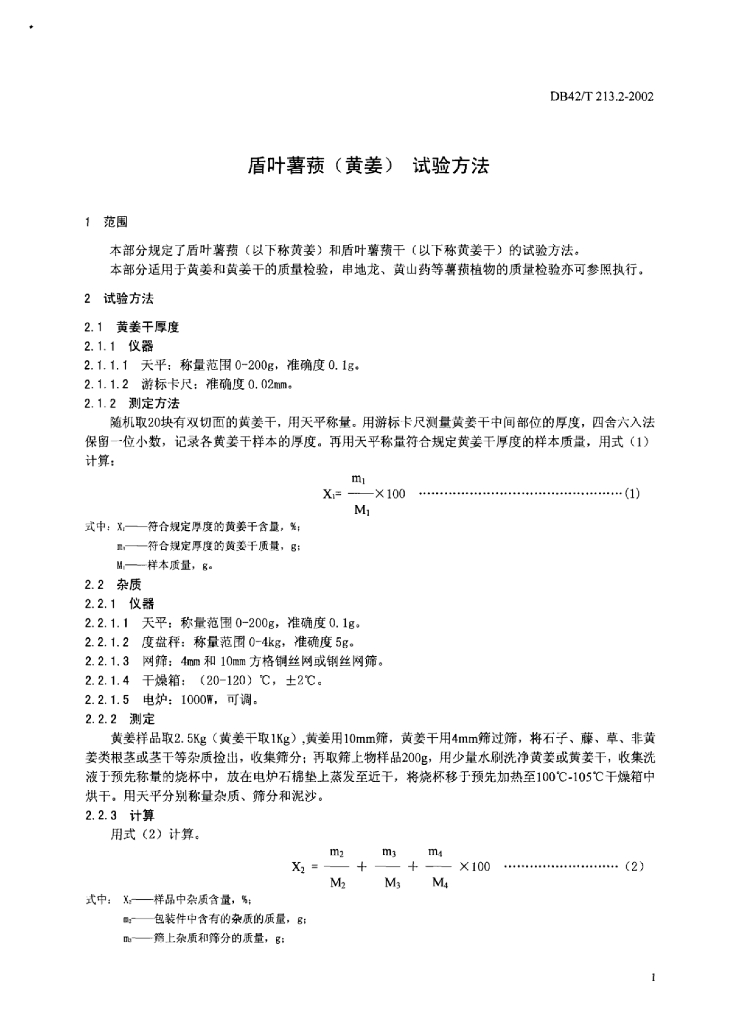 DB42/T 213.2-2002 盾叶薯蓣(黄姜)试验方法