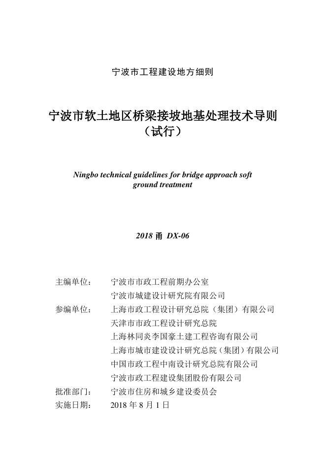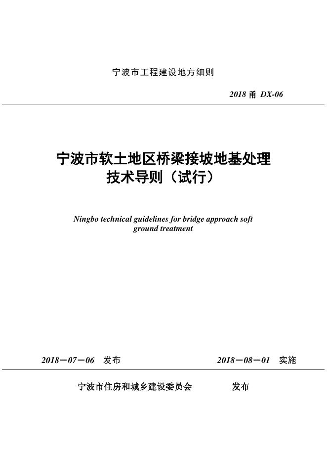 2018甬DX-06 宁波市软土地区桥梁接坡地基处理技术导则试行