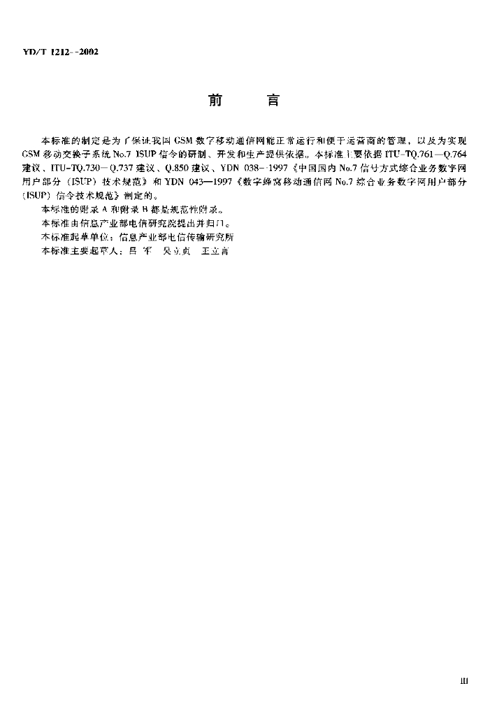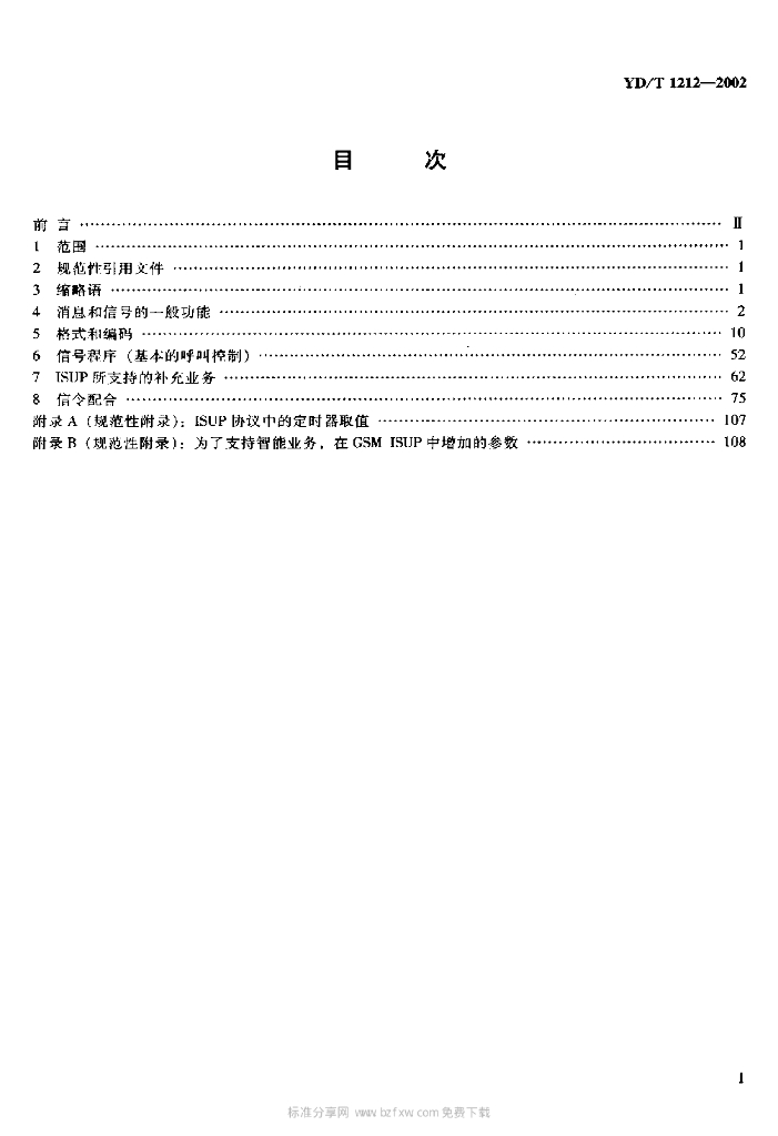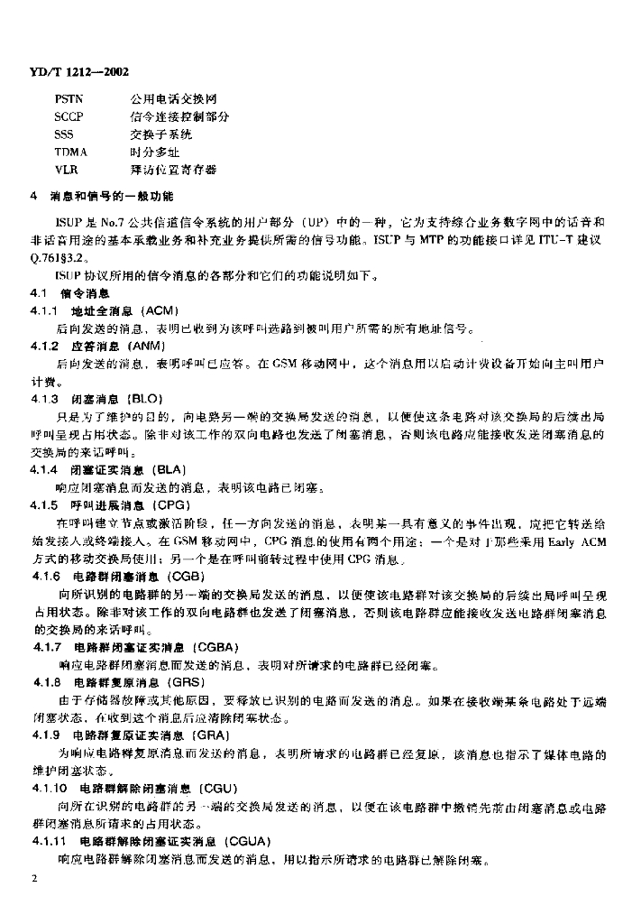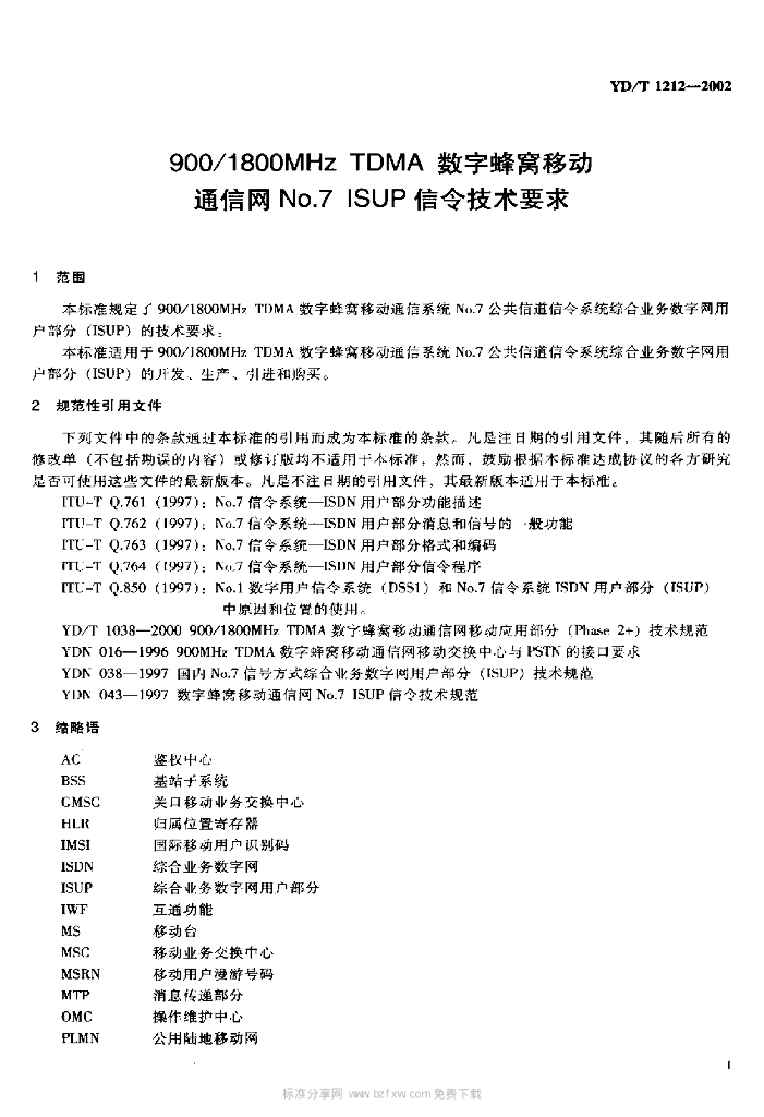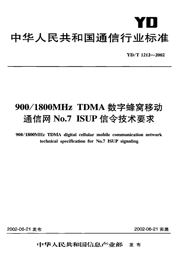 YD/T 1212-2002 900/1800MHz TDMA 数字蜂窝移动通信网 No.7 ISUP 信令技术要求