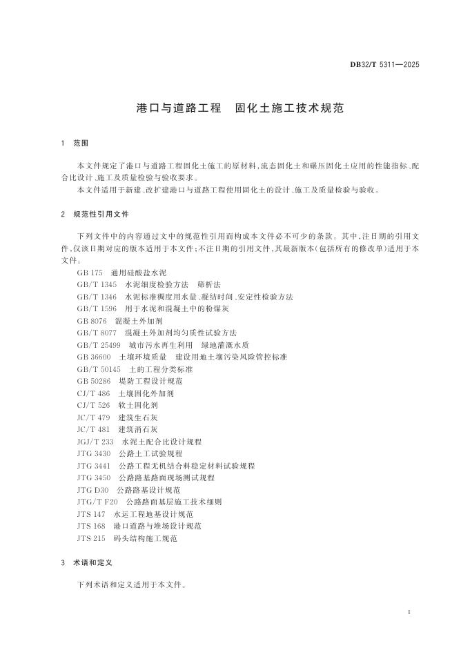 DB32/T 5311-2025 港口与道路工程 固化土施工技术规范