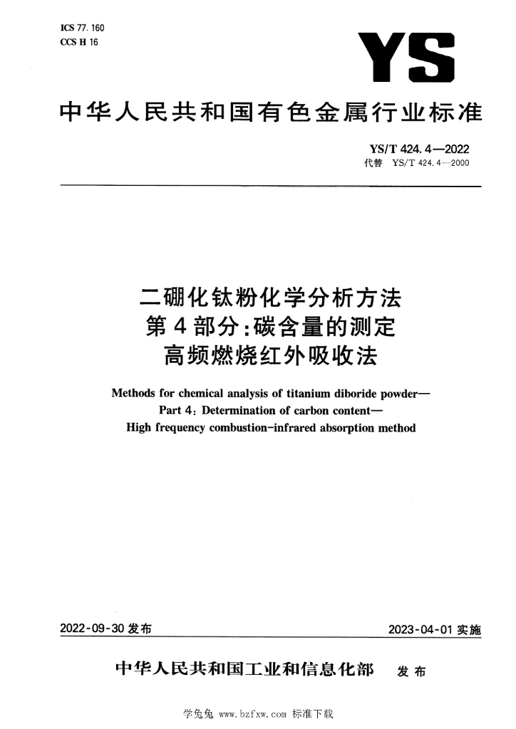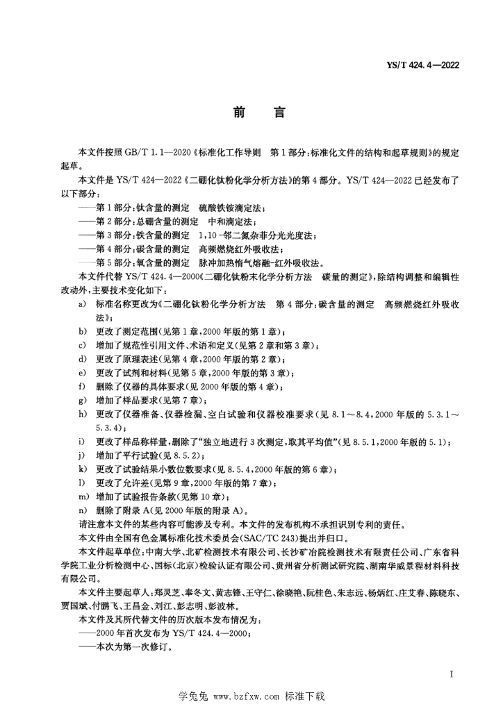 - 代替标准:YS/T 424.4-2000
