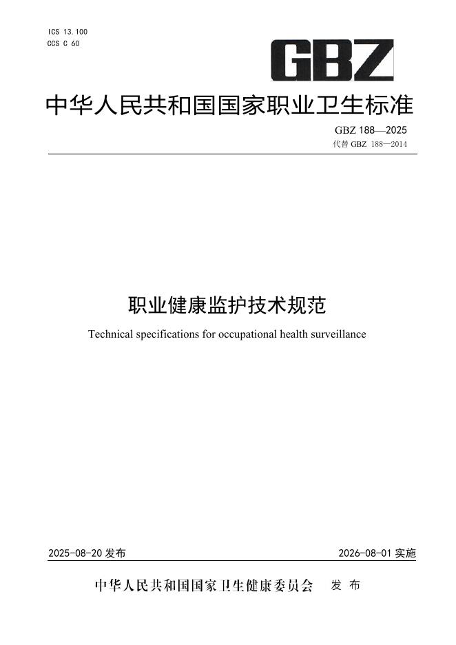 GBZ 188-2025 职业健康监护技术规范