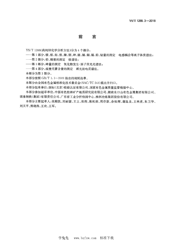 YS/T 1288.3-2018 高纯锌化学分析方法 第3部分:砷量的测定 氢化物发生-原子荧光光谱法