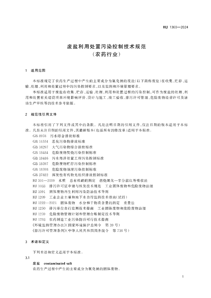 HJ 1360-2024 废盐利用处置污染控制技术规范(农药行业)
