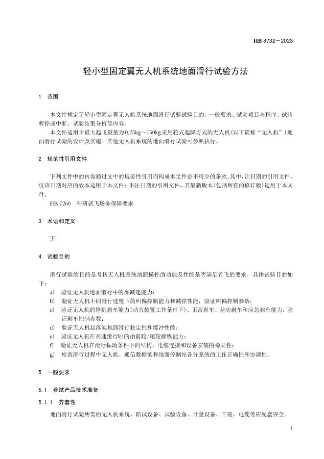 HB 8732-2023 民用轻小型无人机系统地面滑行试验方法