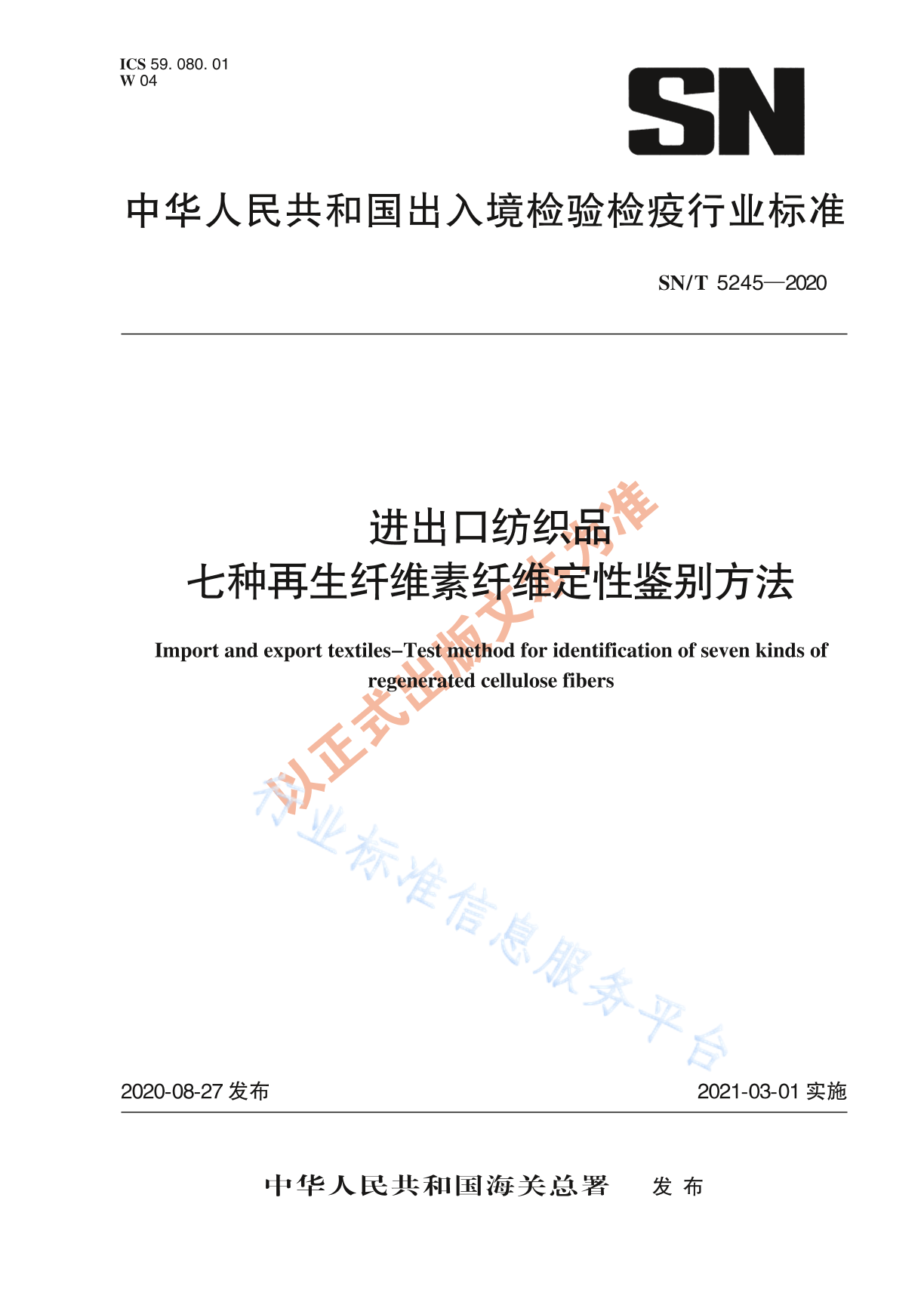 SN/T 5245-2020 进出口纺织品 七种再生纤维素纤维定性鉴别方法